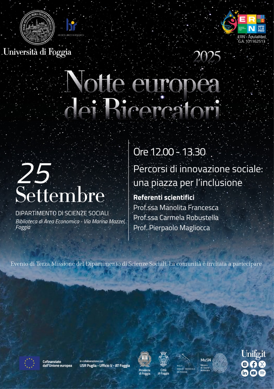 Per maggiori informazioni si rinvia alla pagina di Ateneo dedicata alla Notte dei Ricercatori 2025.